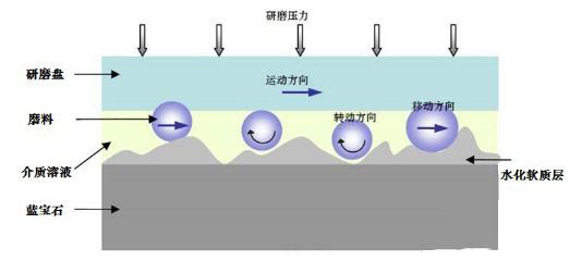 采用研磨拋光這種方法來對藍寶石表面拋光時,其機理分為三個過程: